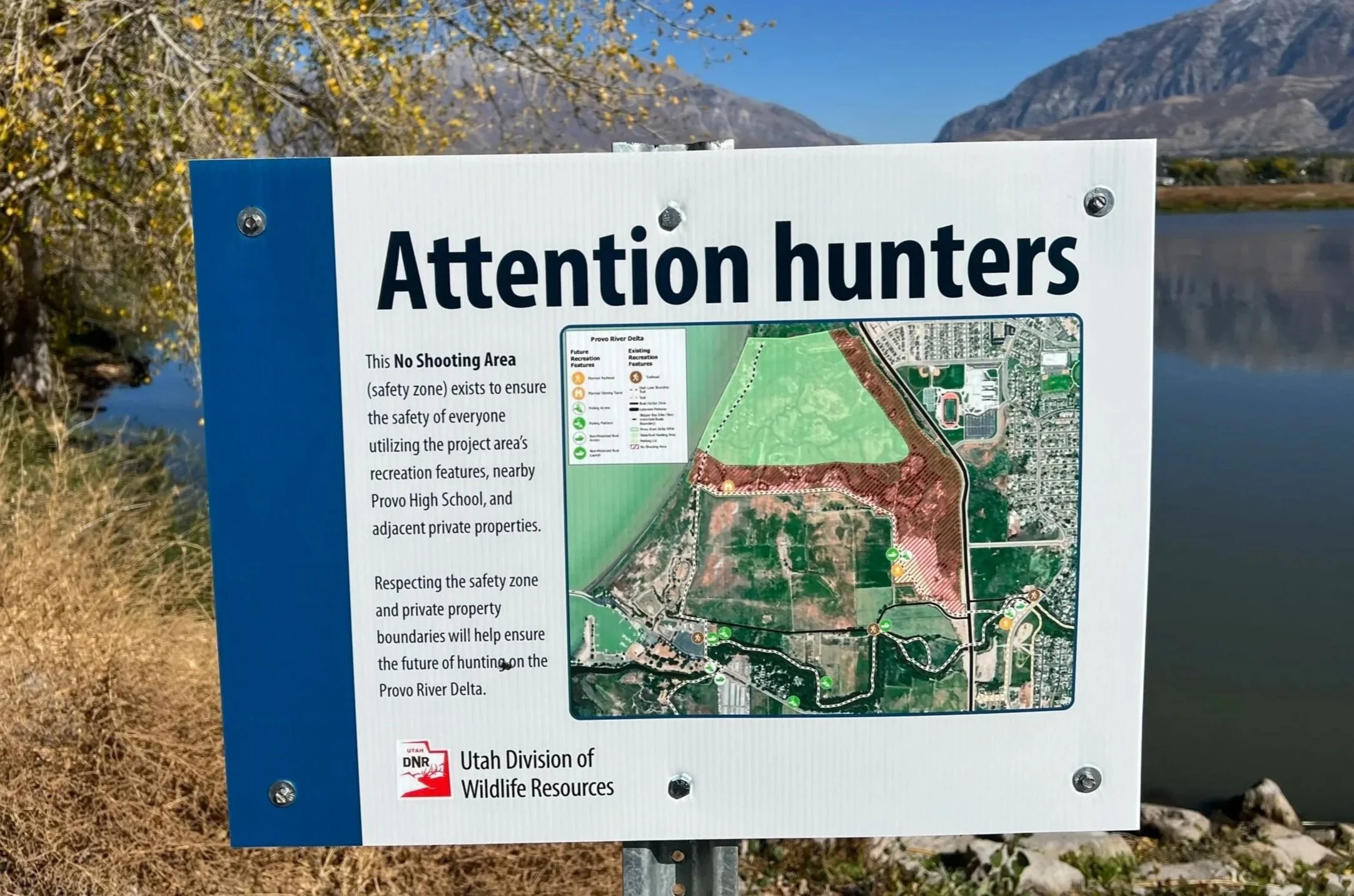 The No Shooting Area (safety zone) exists to ensure the safety of those in the delta, nearby Provo High School, and adjacent private properties. Respecting the safety zone and private property boundaries will help ensure the future of hunting on the delta. Hunters, anglers and boaters should also be aware of pertinent hunting and fishing regulations and that only nonmotorized boats are allowed in the delta. If you have questions about delta’s wildlife management area, contact UDWR’s Central Region office at 801-491-5678.